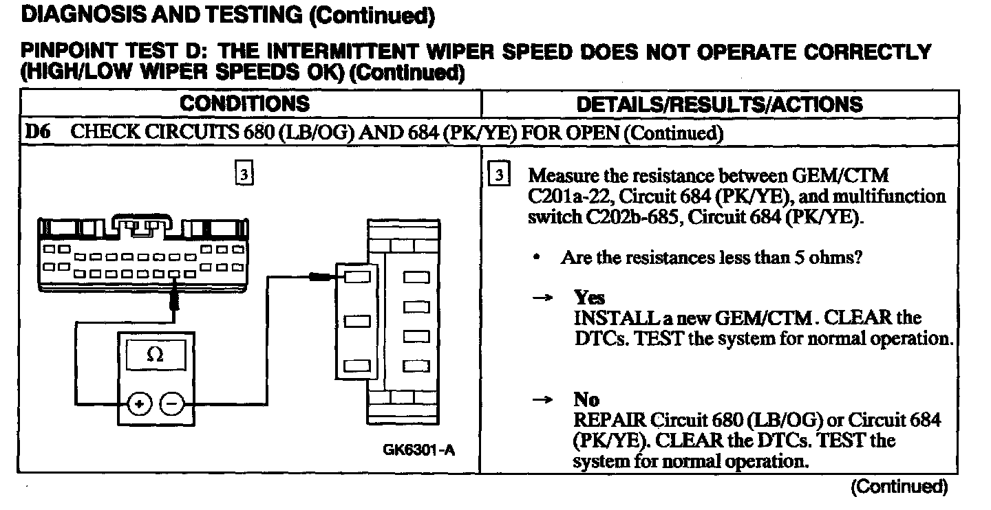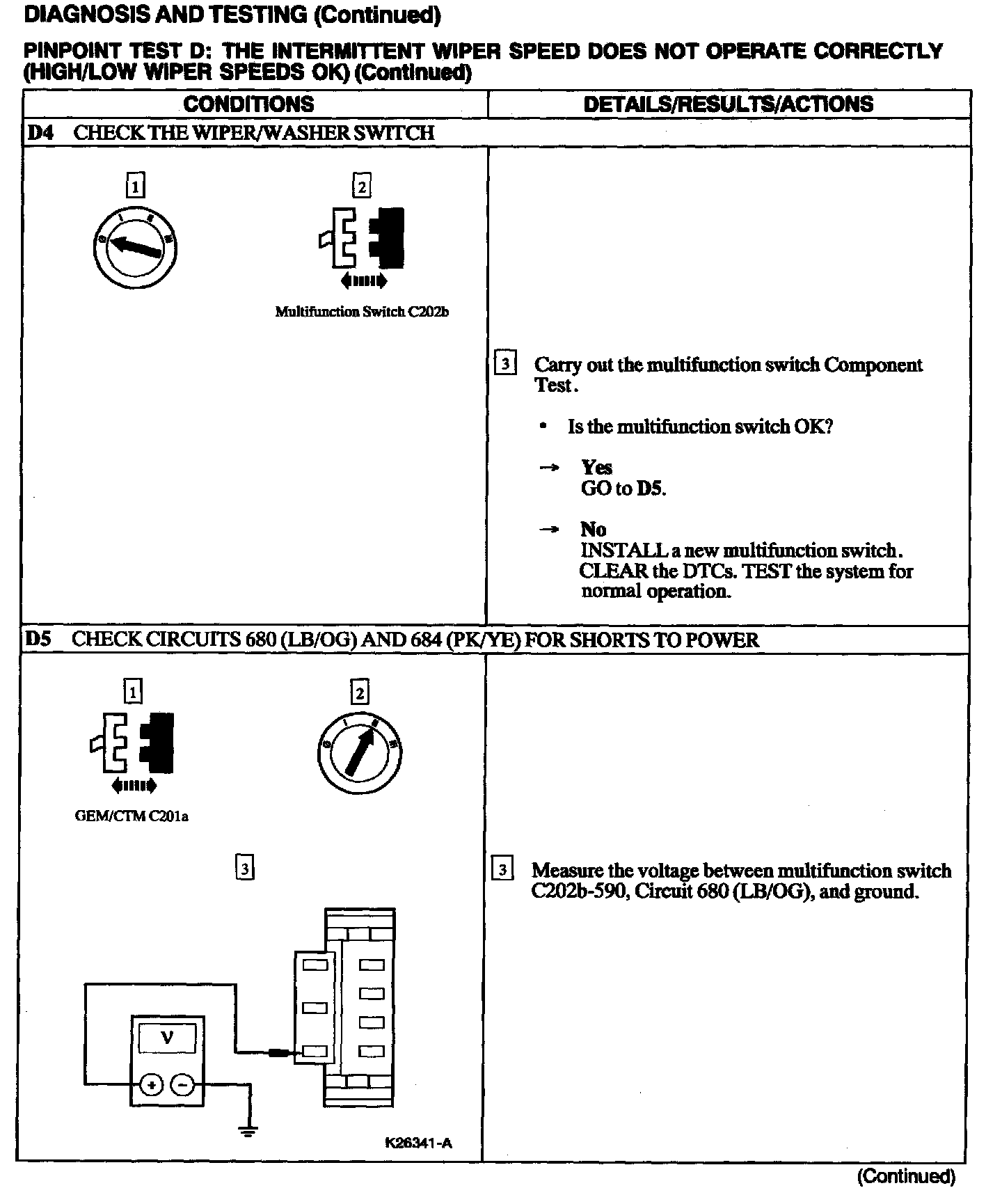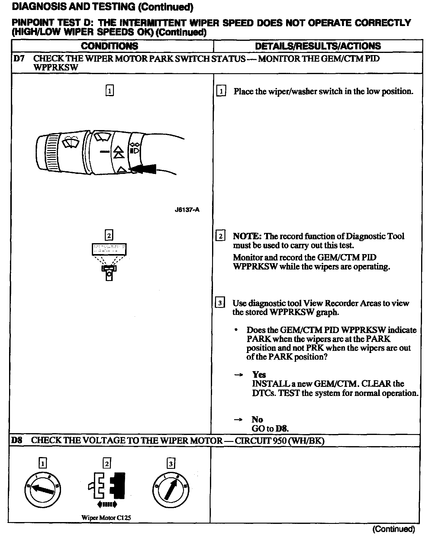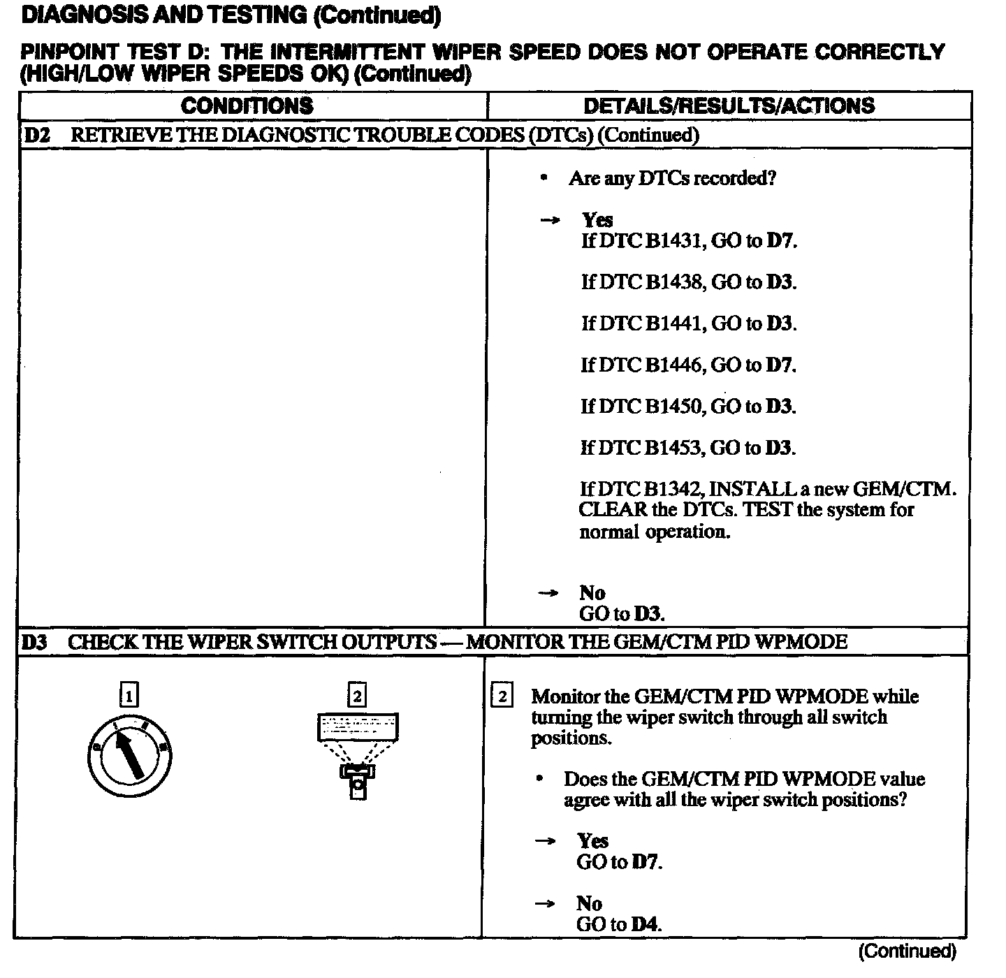 Test D: Intermittent Wiper Speed Does Not Operate Properly