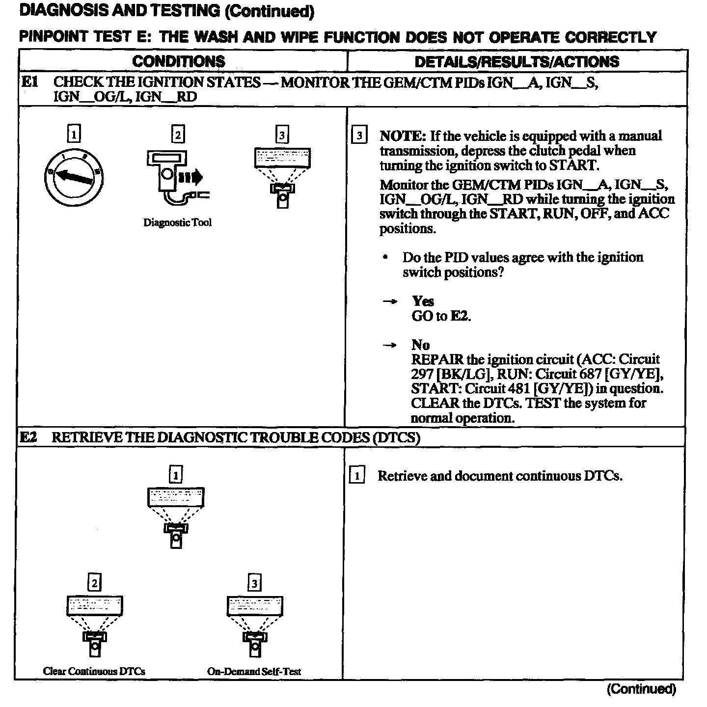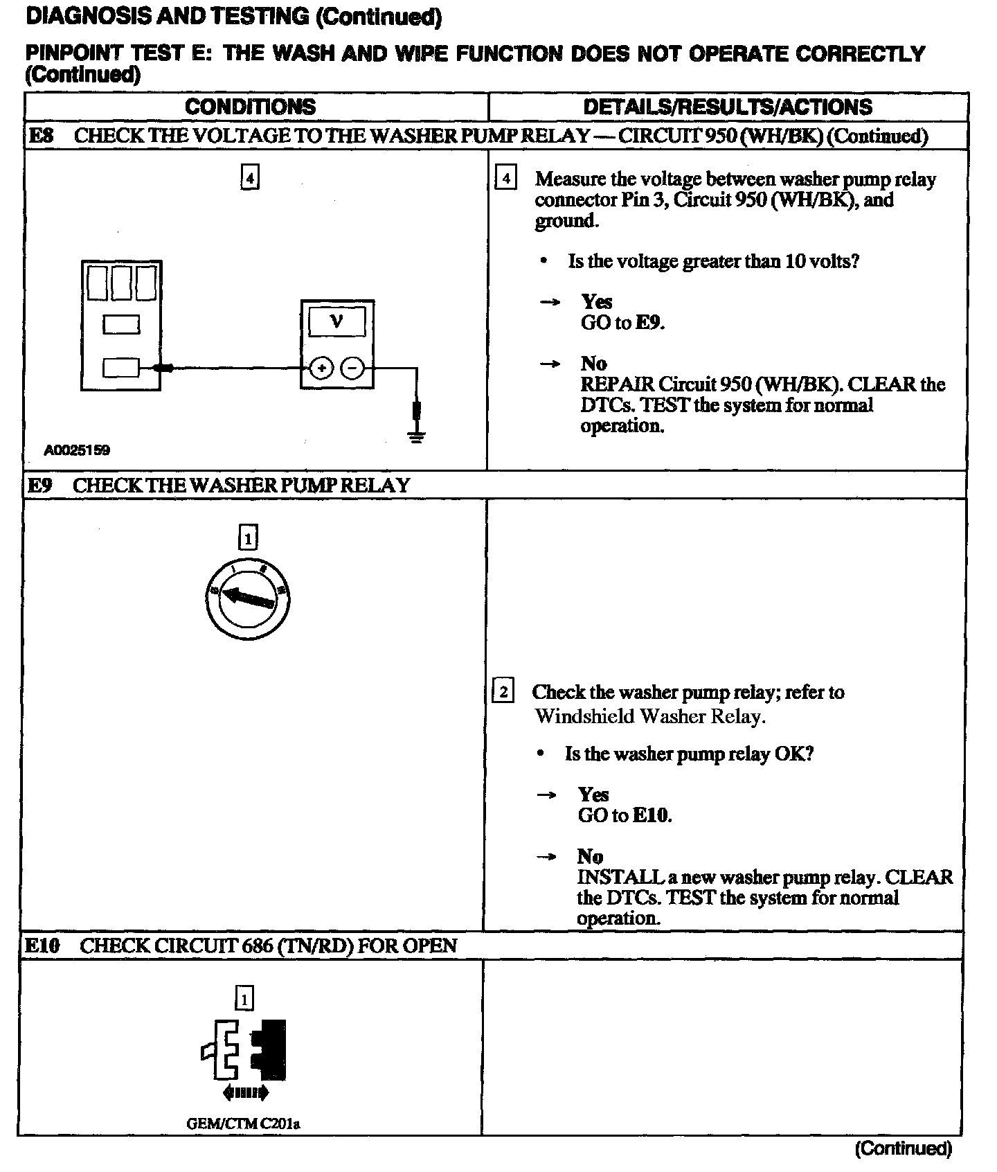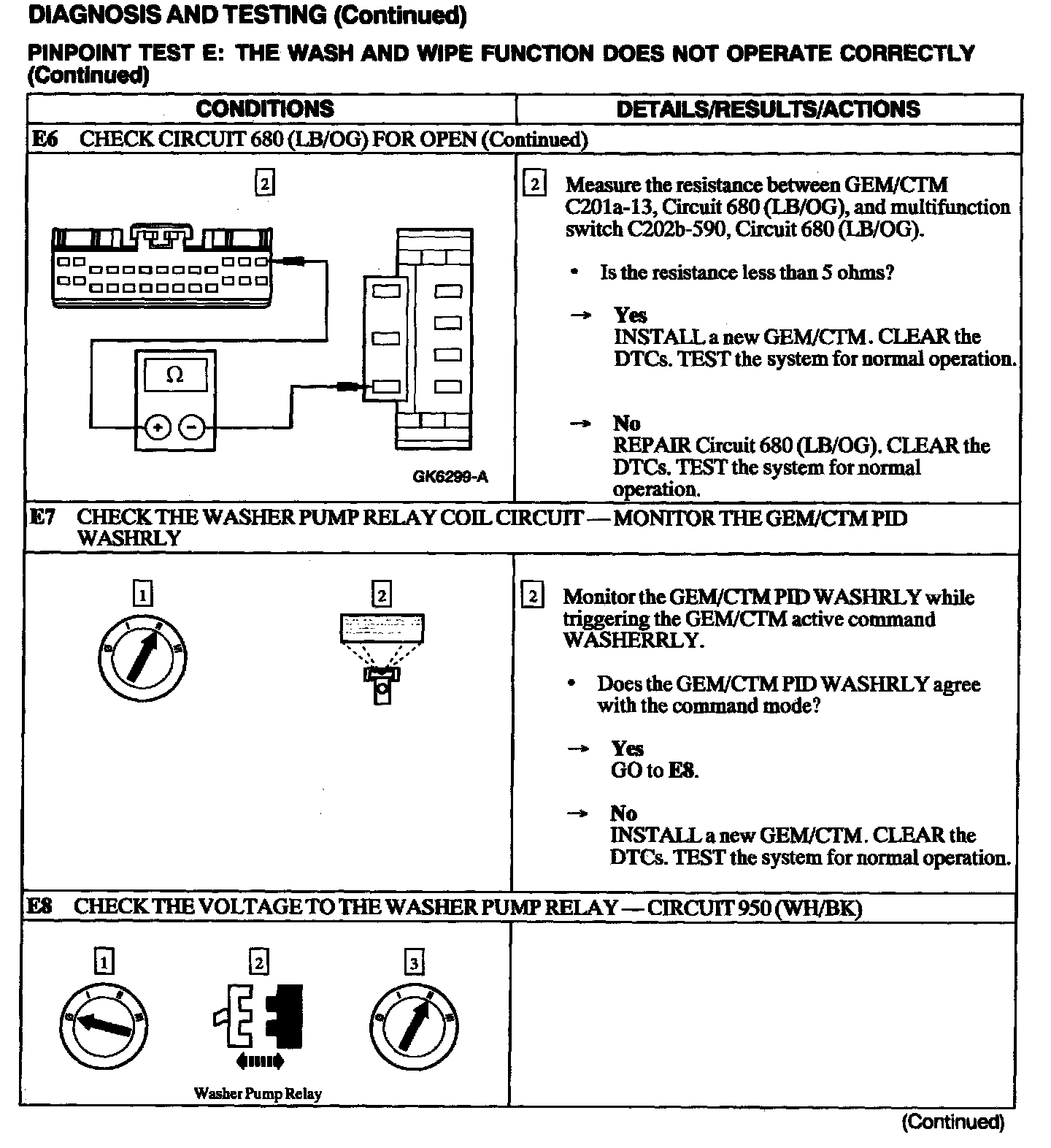Test E: Wash And Wipe Function Does Not Operate Correctly