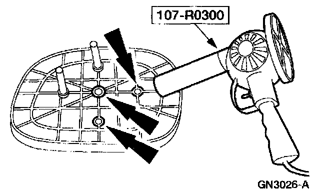 1. Install the friction pins into the mirror backing plate by using the special tool to warm the mirror backing plate sockets at the top and outboard positions.