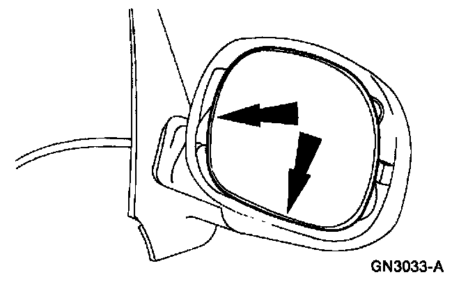 1. Position the mirror glass to obtain a gap at the lower inboard edge of the mirror assembly.