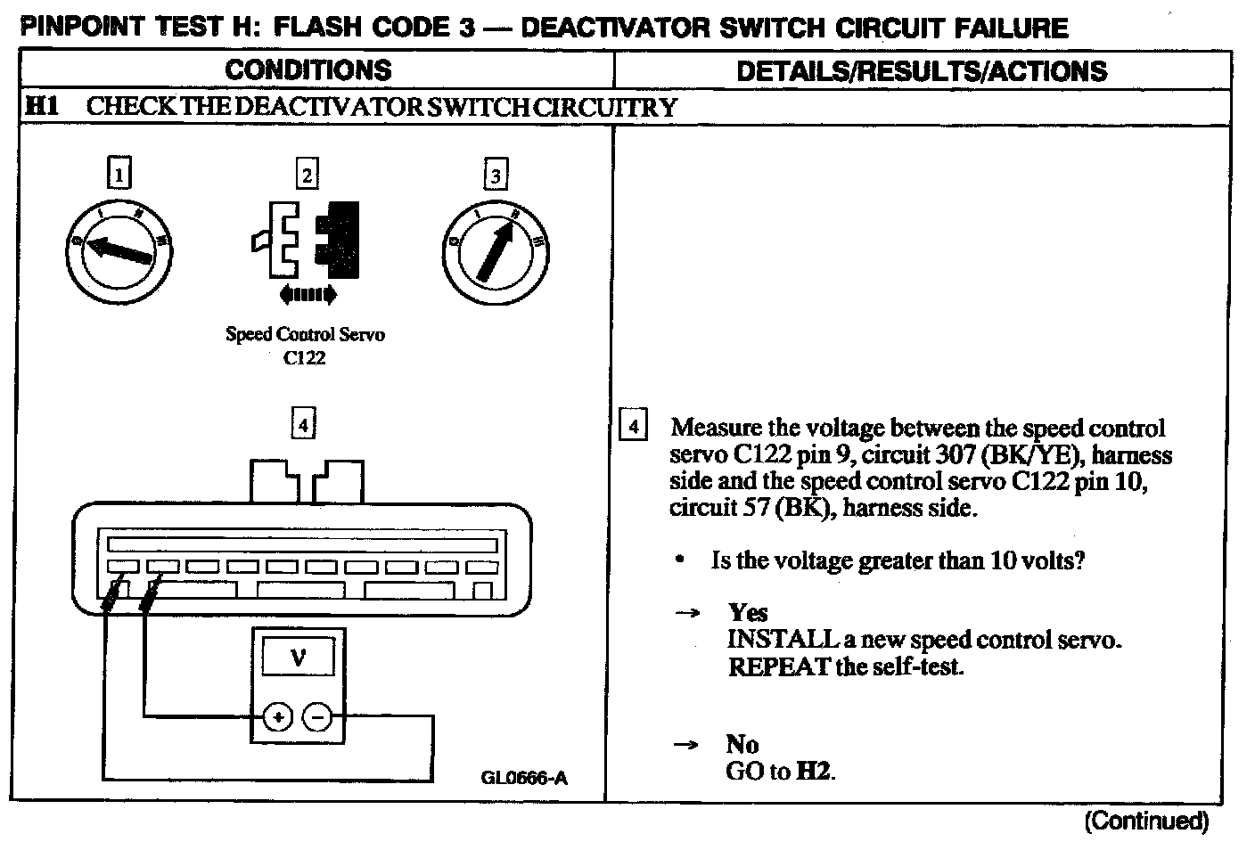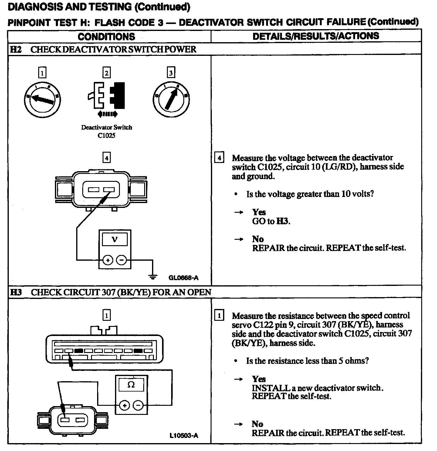 Test H: Flash Code 3 - Deactivator Switch Circuit Failure