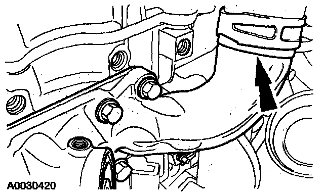 8. Disconnect the exhaust manifold to Exhaust Gas Recirculation (EGR) valve tube lower fining and remove the tube.