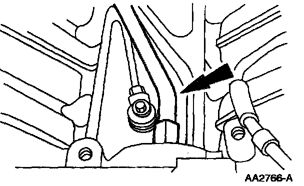 40. Remove the upper two transmission-to-engine bolts and the wiring harness bracket.