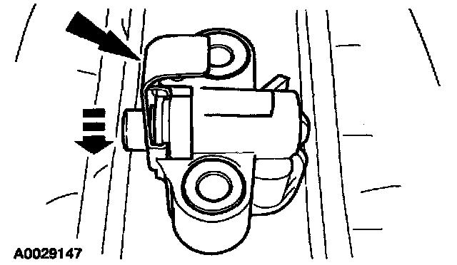 2. Install a retaining clip on the tensioner to hold the plunger in during installation.