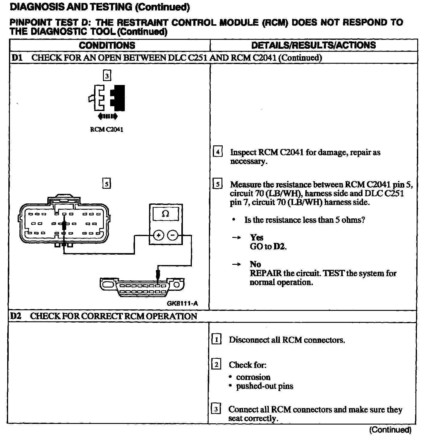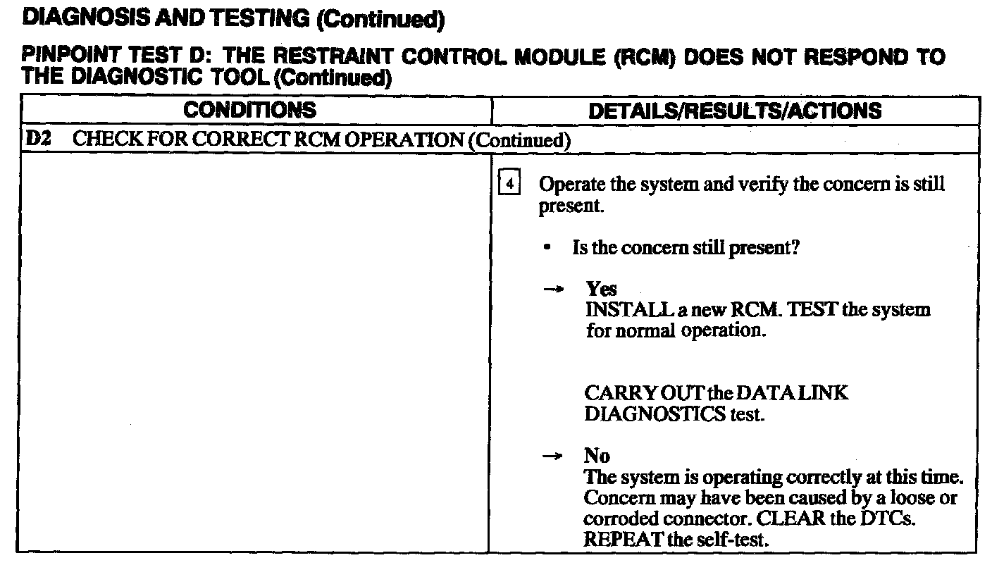 Test D: RCM Does Not Respond to the Scan Tool