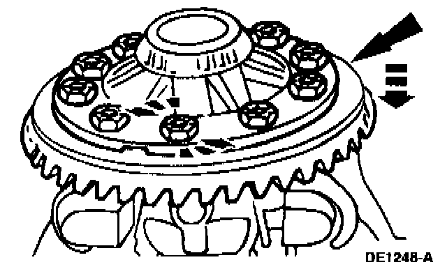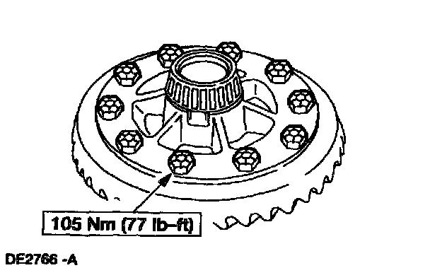 1 Position three bolts to align the holes in the ring gear and the differential case.
