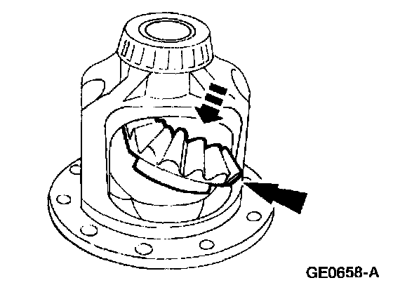 5. Engage the differential pinion gears opposite the differential side gears.