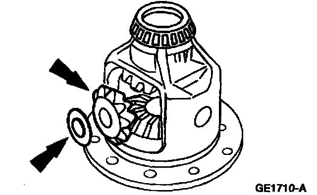 6. Remove the differential side gears and the differential side gear thrust washers.