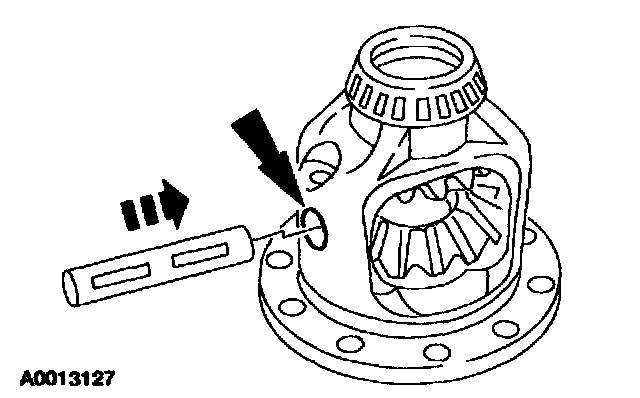 1 Rotate the differential pinion gears to the differential case window, and remove them.