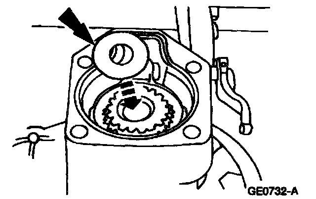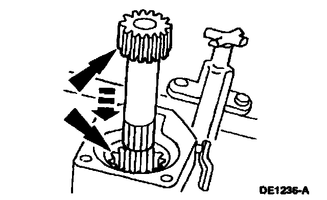 55. Lift the axle shaft shift lever, and position the coupler shift selector gear, tapered end downward, into the clutch fork.