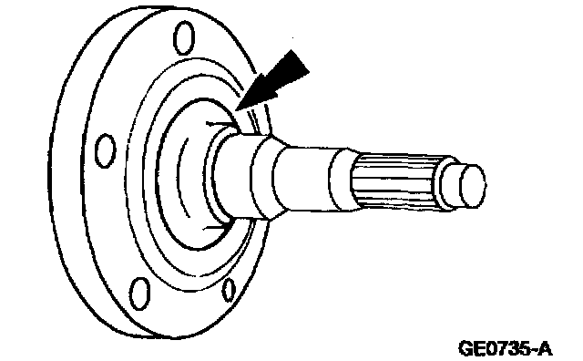61. Examine the axle shaft seal and bearing surface for damage. If necessary, polish the bearing surface with fine crocus cloth.