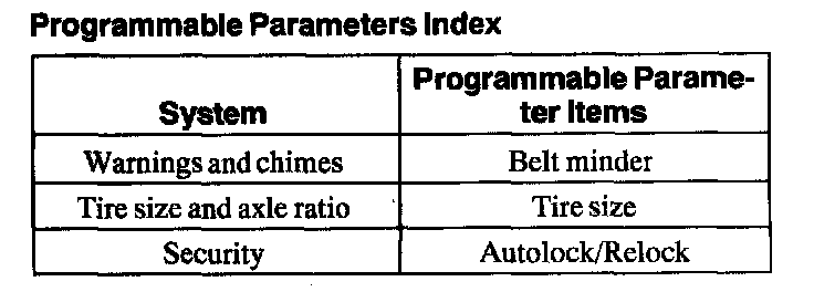 Programmable Parameters Index:
