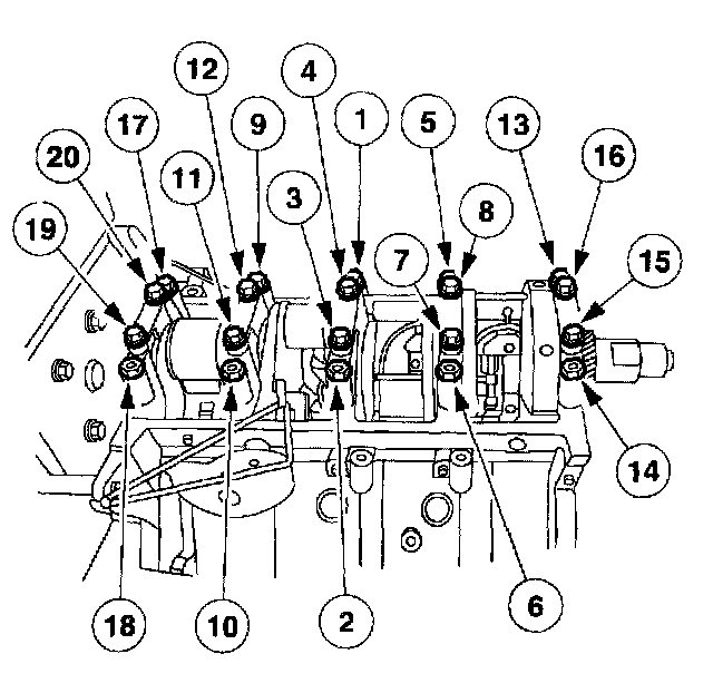 Main Bearing Cap Bolt Sequence: