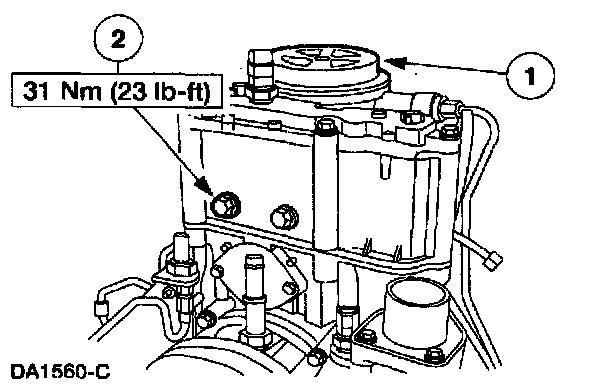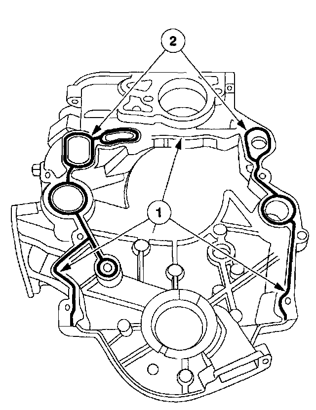 1. Apply a bead of RTV Silicone Sealant F5TZ-19G204-AB or equivalent meeting Ford specification NAVSTR D15-5012 Type II to the sealing surfaces not in contact with the gasket.