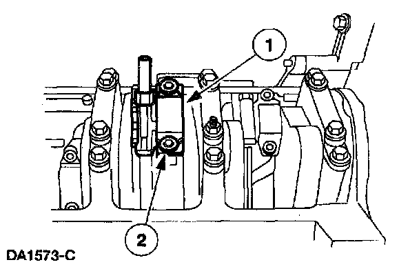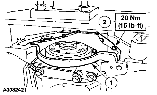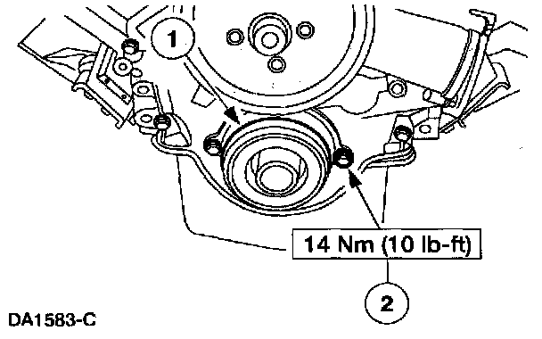 1. Apply a bead of RTV Silicone Sealant F5TZ-19G204-AB or equivalent meeting Navistar specification D15-5012 Type 2. Position the engine rear cover and install the bolts finger tight.