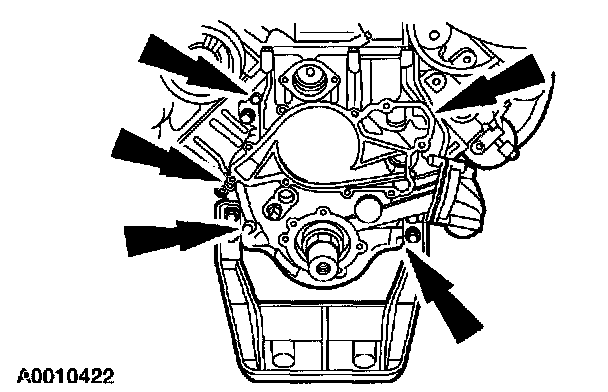 22. Install the engine front cover and bolts. Do not tighten at this time.