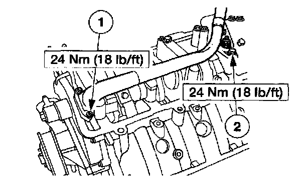 ^ Tighten the bolts to 129 Nm (96 ft. lbs.).