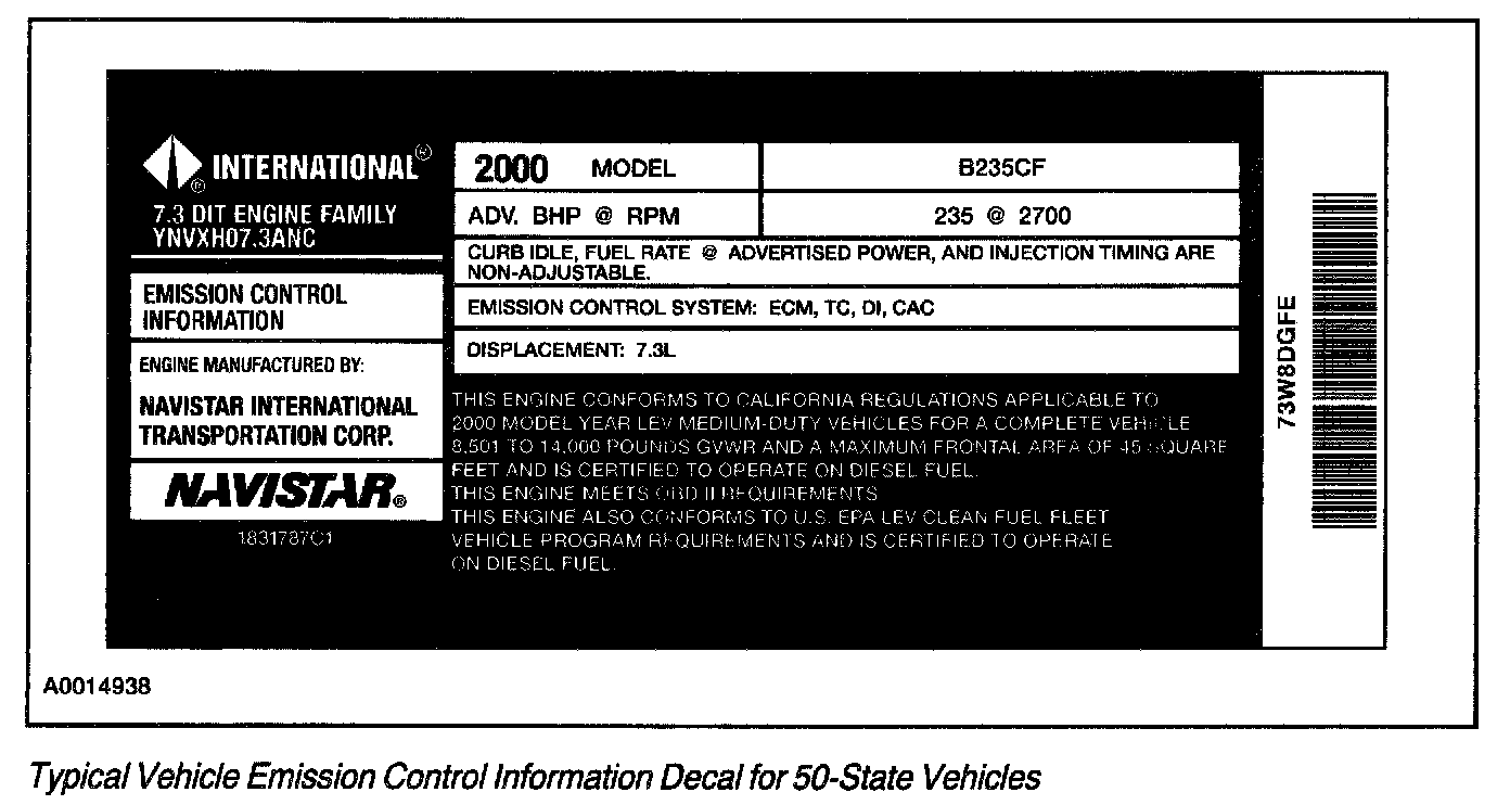 Each vehicle has a decal containing emission control information that applies specifically to the vehicle and engine.