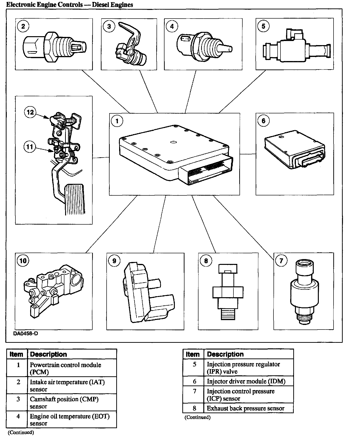 The electronic engine controls consist of the components as shown in the illustration.