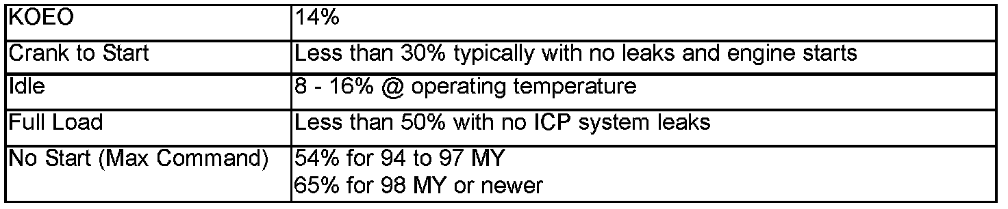 Note: As a general rule 7.3 Power stroke engines require 500 psi ICP (1.0 volts ICPv) minimum to start.
