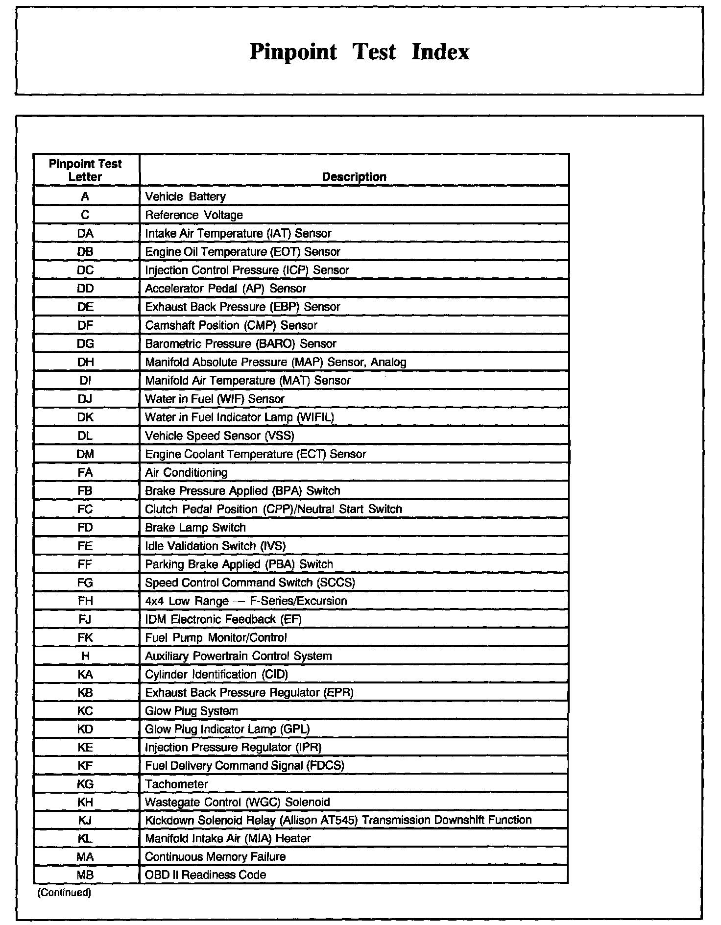 Pinpoint Test Index, Part 2:
