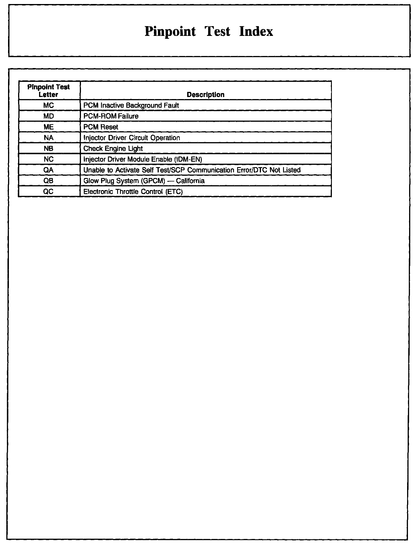 Pinpoint Test Index, Part 1: