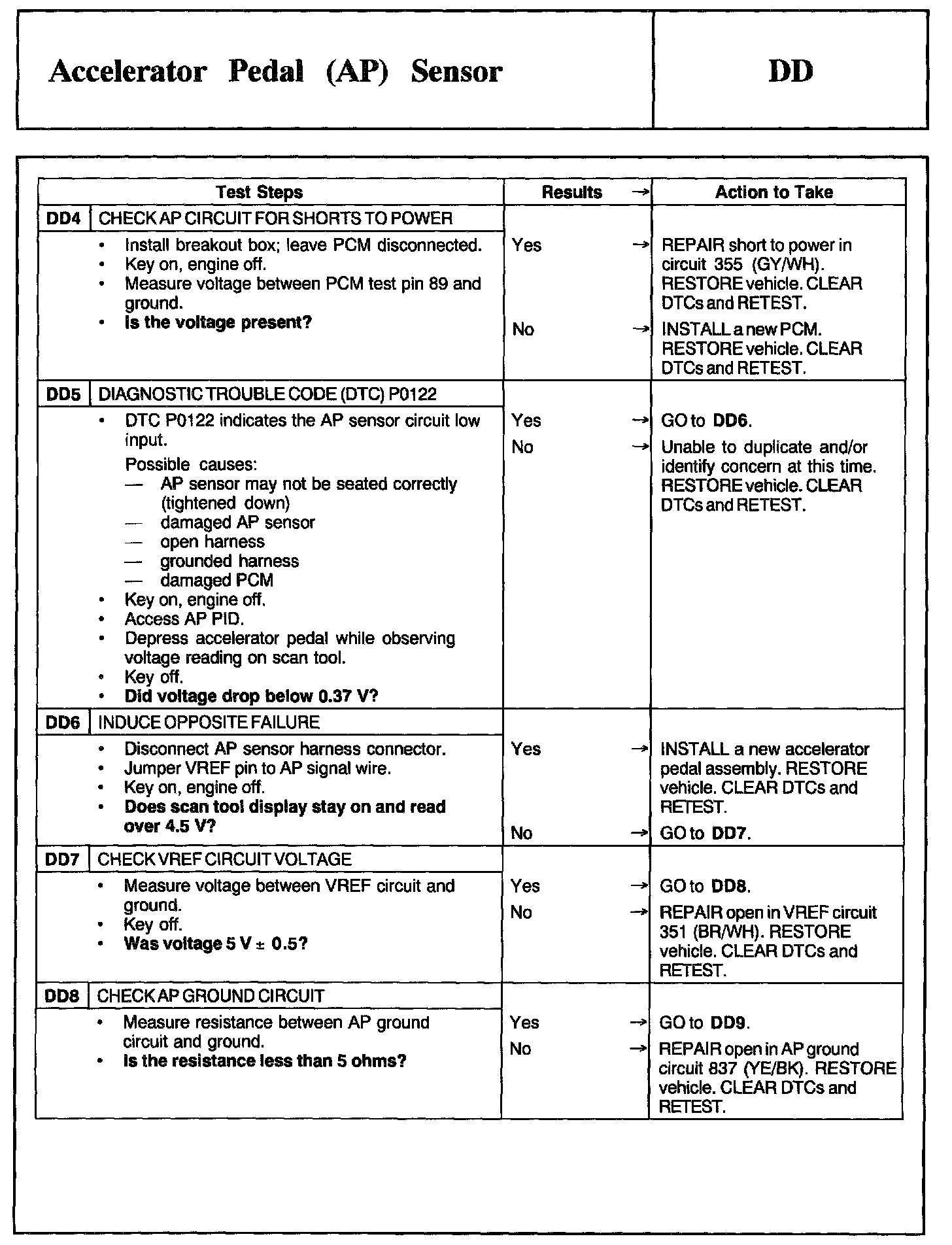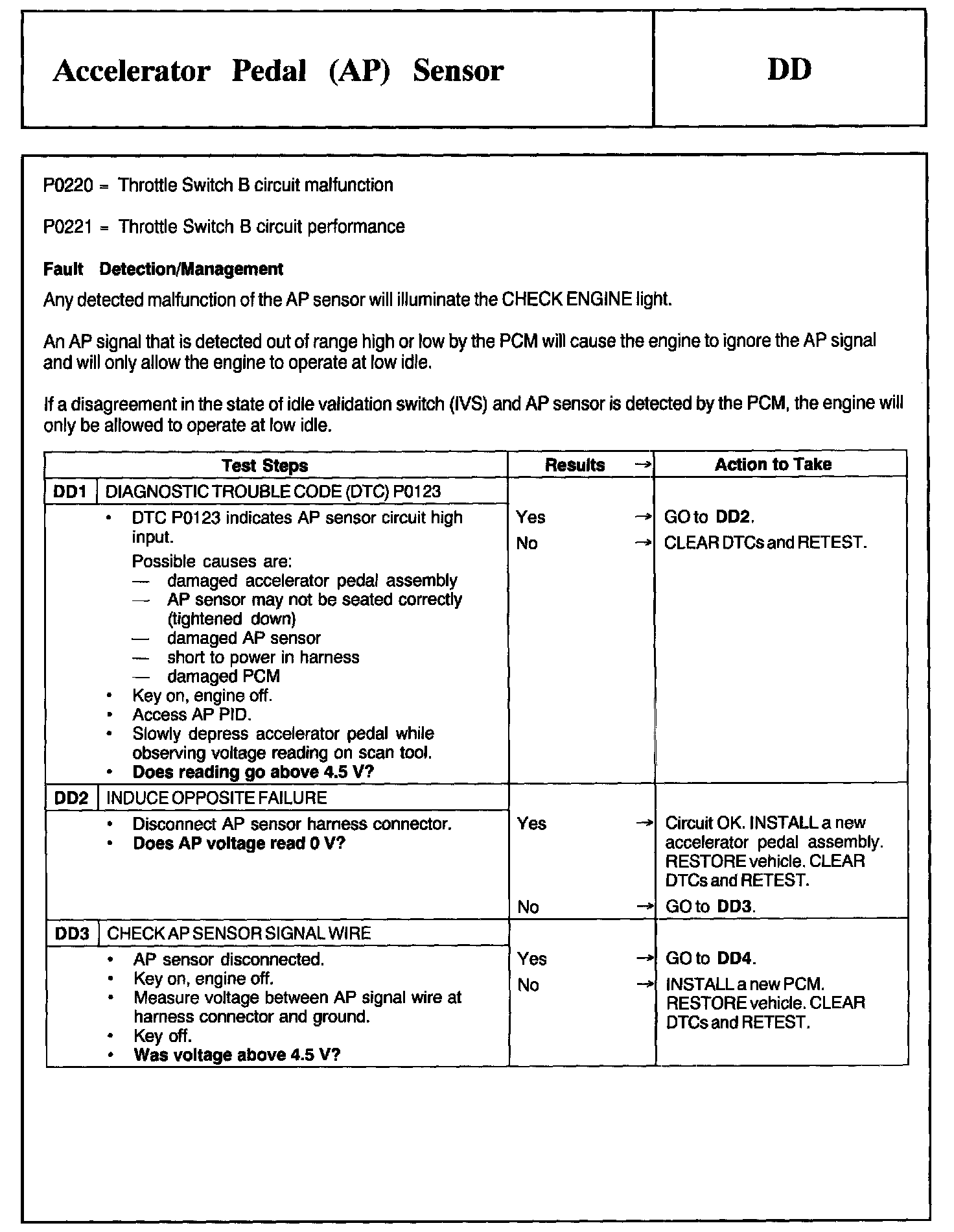 Tests DD: Accelerator Pedal (AP) Sensor