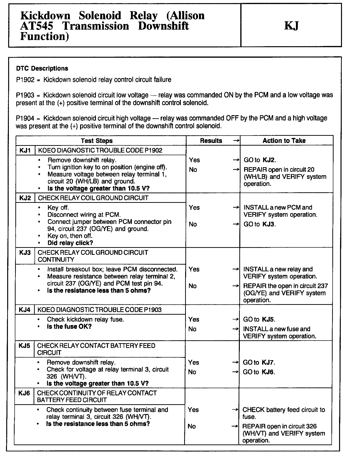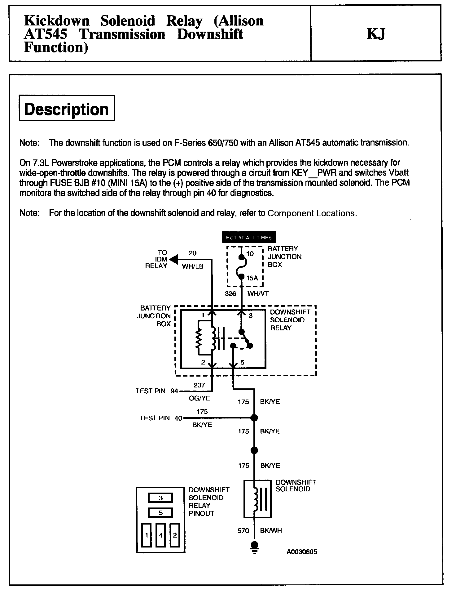 Tests KJ: Kickdown Solenoid Relay (Allison AT545 Downshift Function)