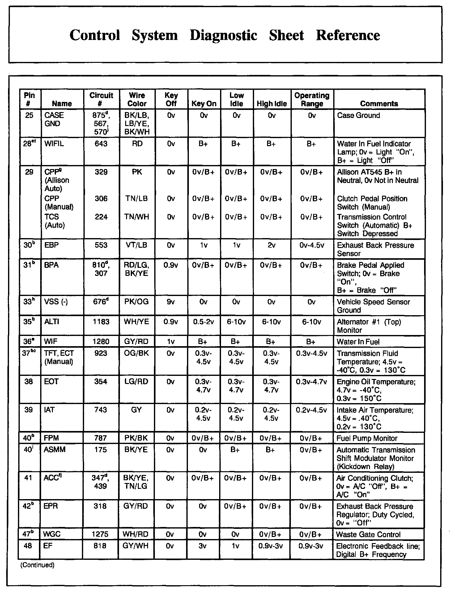 PCM Pin Descriptions And Expected Values, Part 2: