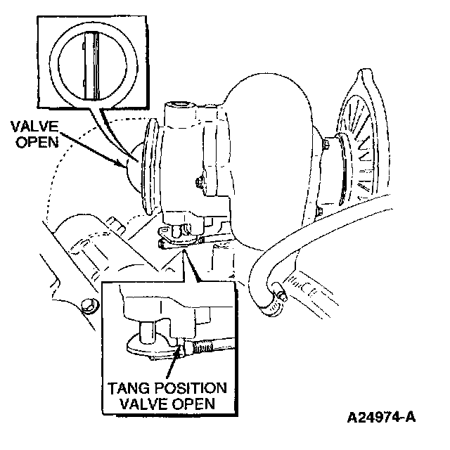 Inspect the exhaust back pressure device bellcrank during cranking and assure that it is not closing. Inspect the exhaust system for damaged or blocked pipes. When the tang is against the stop, the valve is fully open.