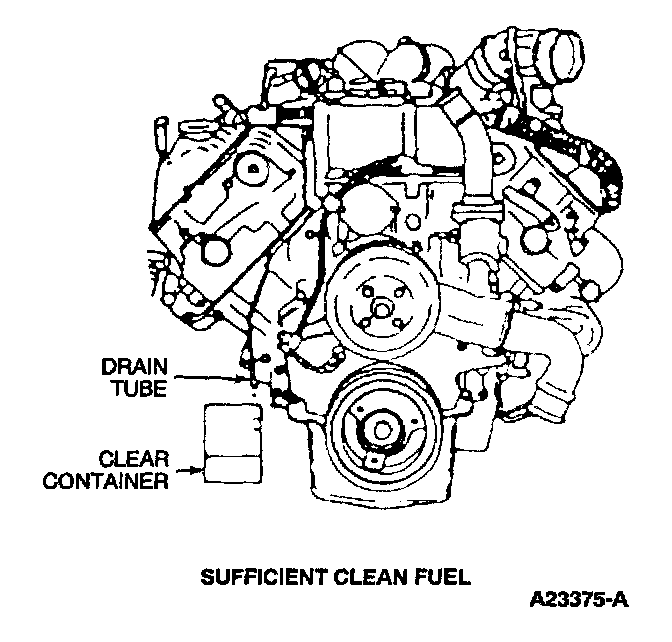 Flow out of the drain should be a steady stream. Insufficient flow could indicate fuel supply or fuel system problems.