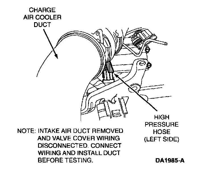 Incorrect measurements will result if all glow plug/injector connectors to valve cover are not disconnected.