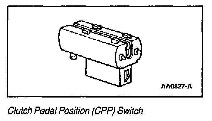 The Clutch Pedal Position (CPP) switch is an input to the PCM indicating the clutch pedal position. The CPP sends battery voltage to the PCM when the clutch is engaged (foot off of pedal) and zero voltage when the clutch is disengaged (pedal depressed).