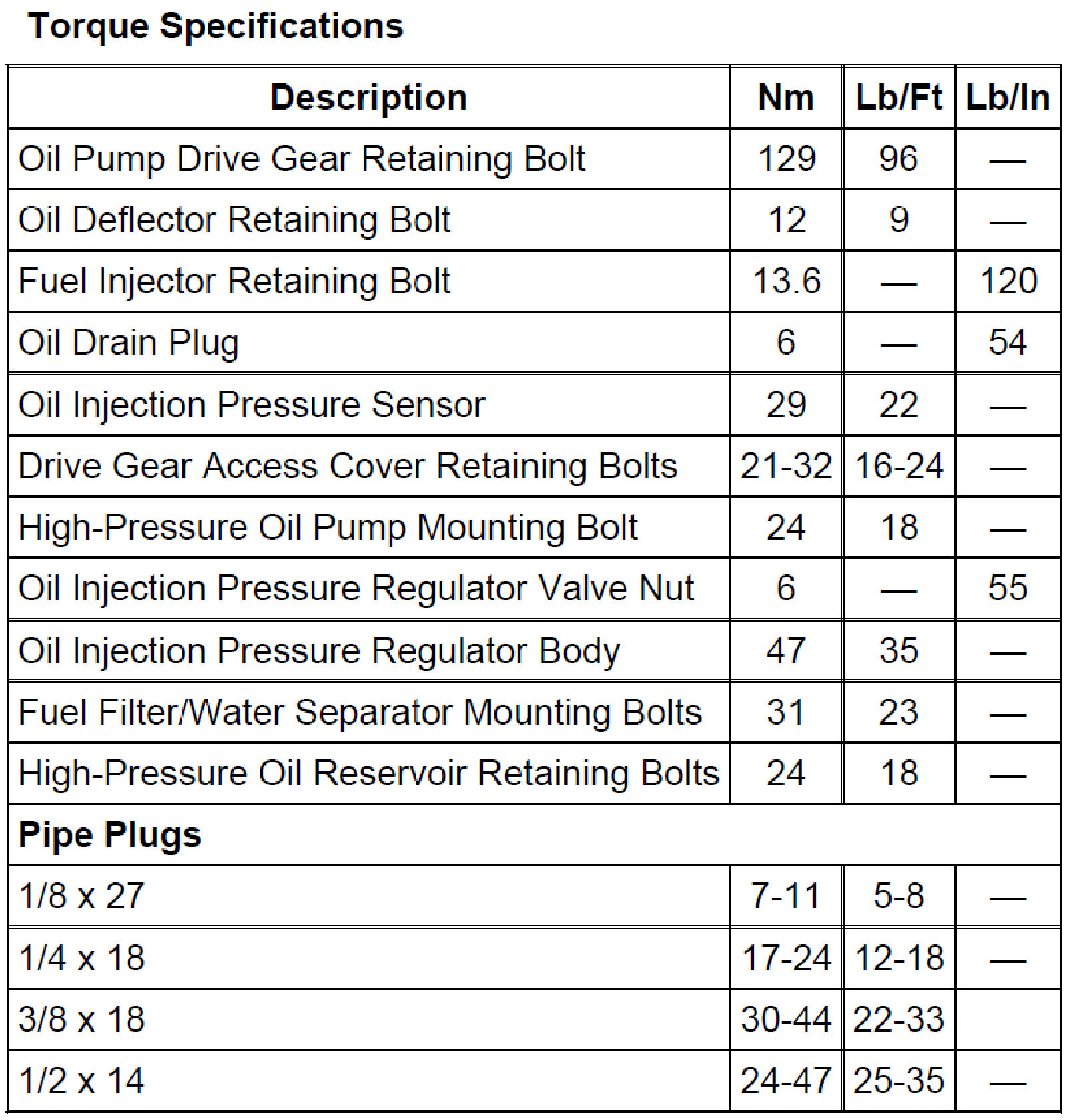 Torque Specifications