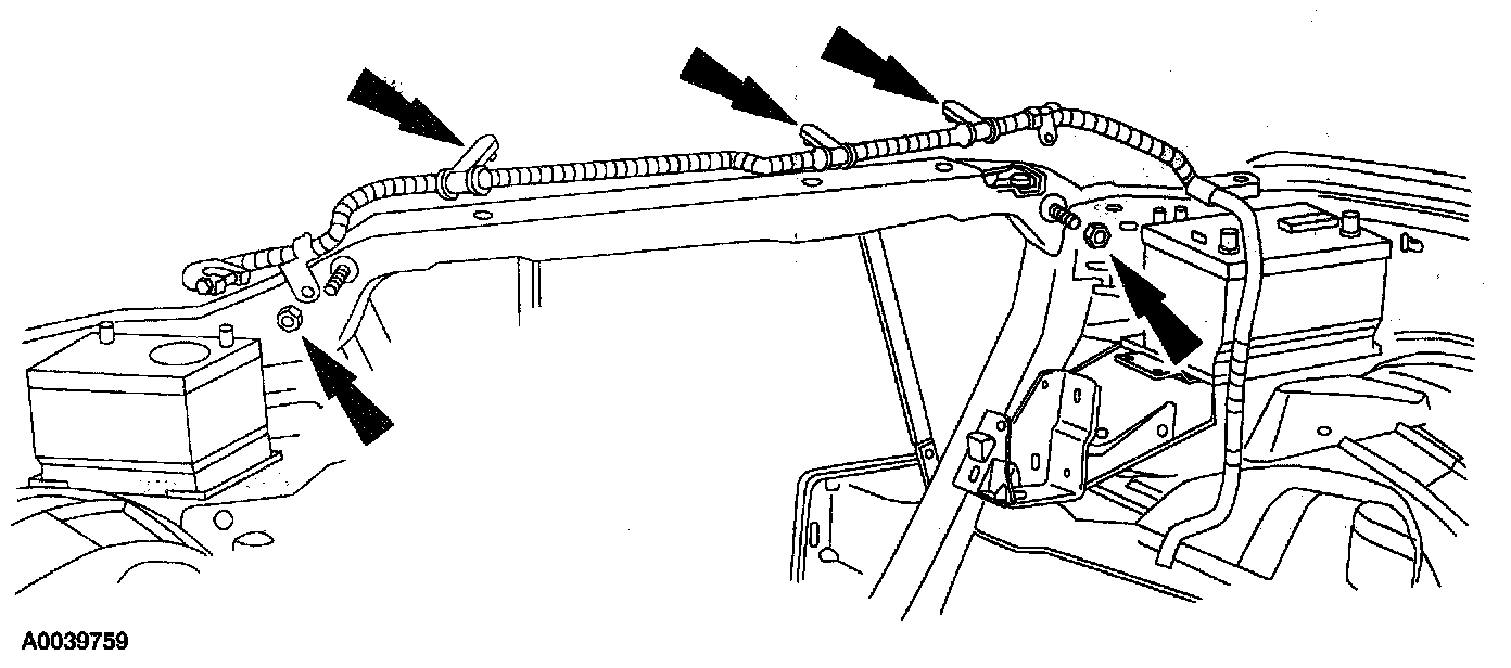 6. Remove the pin-type retainer on the top of the LH frame rail.