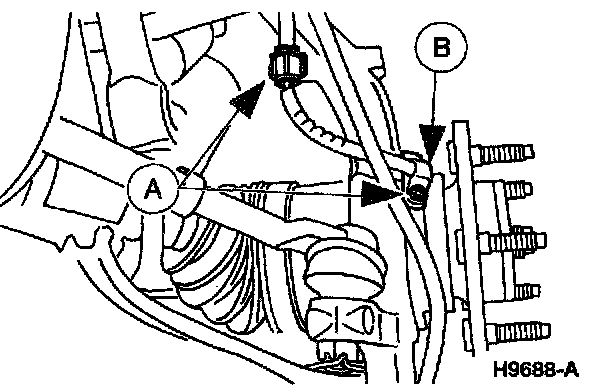 3. Remove the (A) front brake anti-lock sensor bolts and the (B) front brake anti-lock sensor.