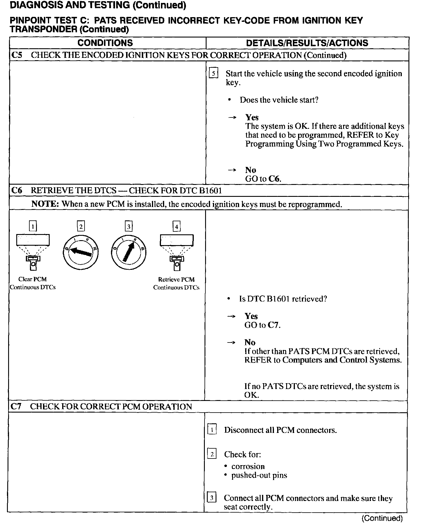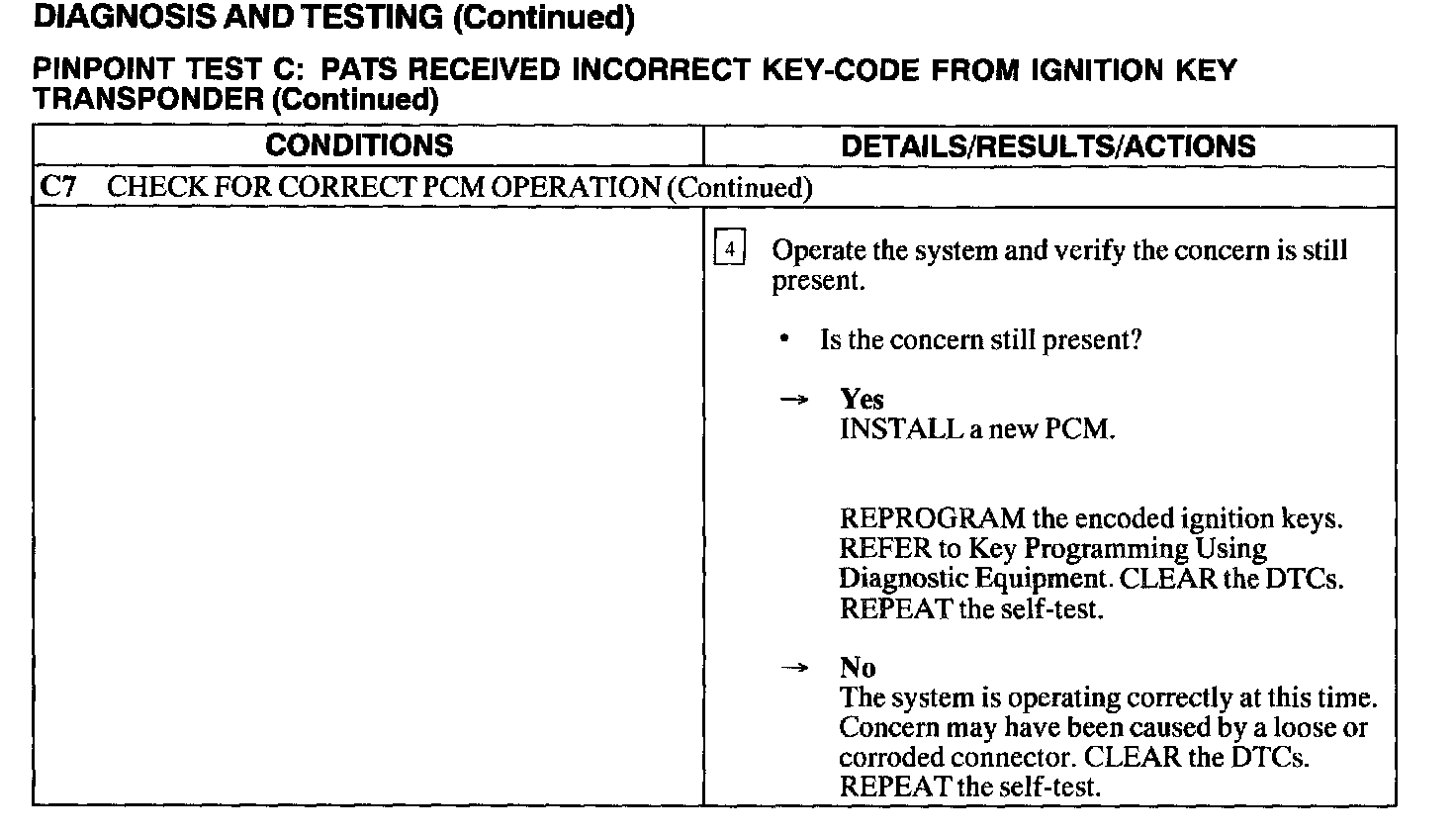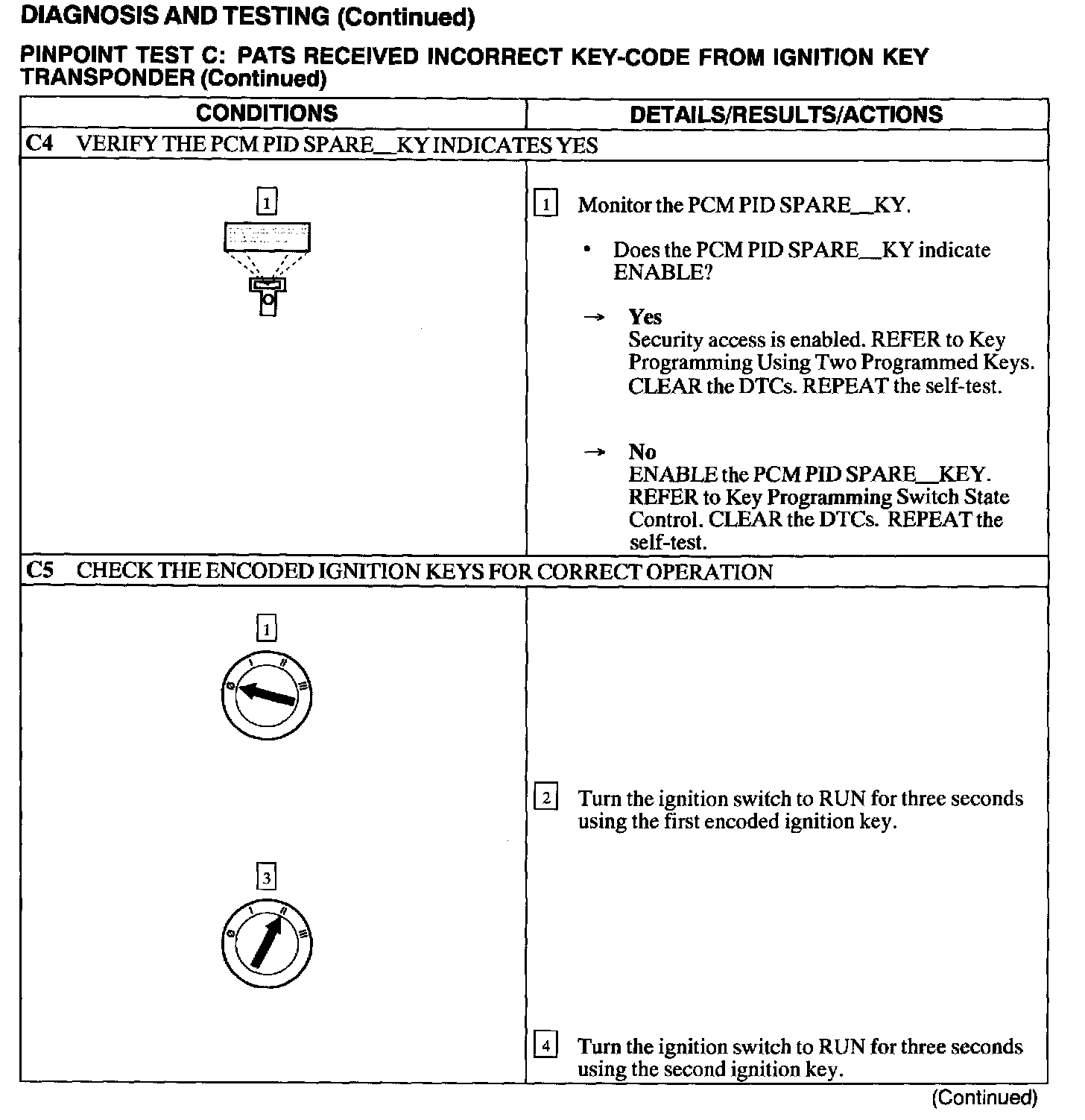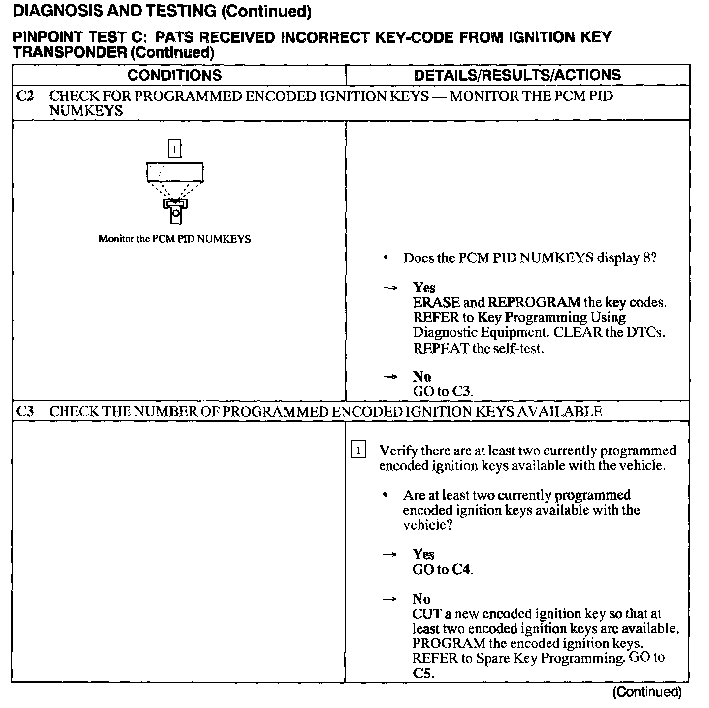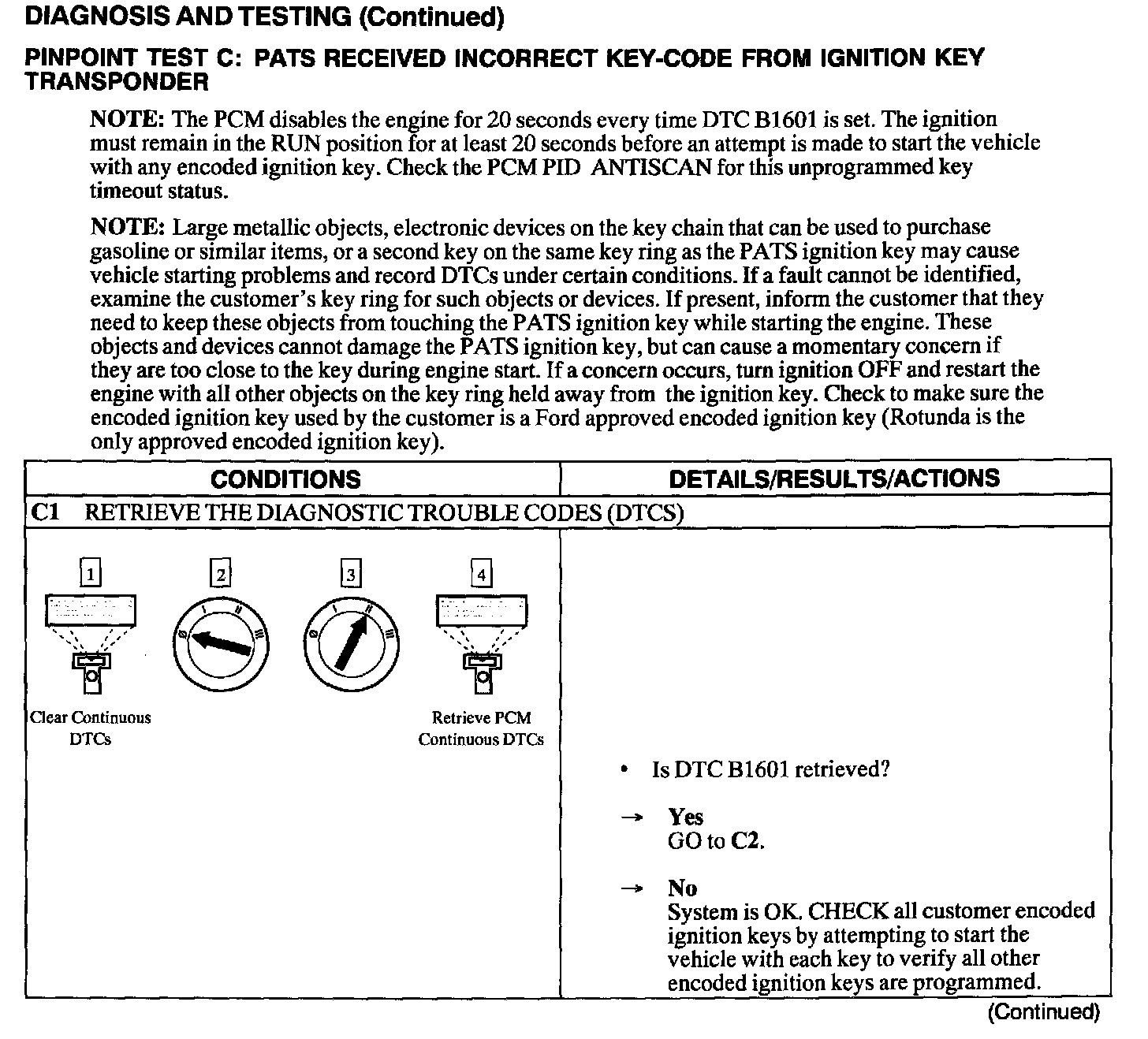 Test C: PATS Received Incorrect Key Code From Ignition Transponder
