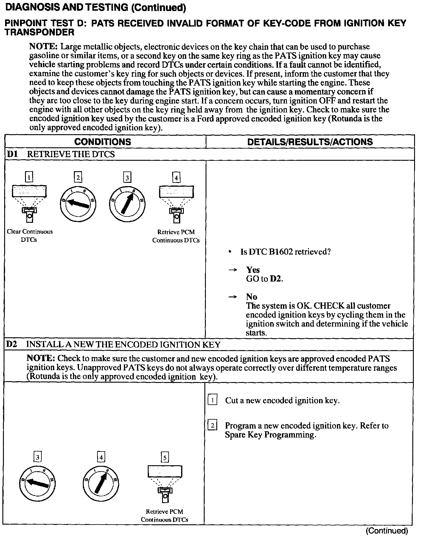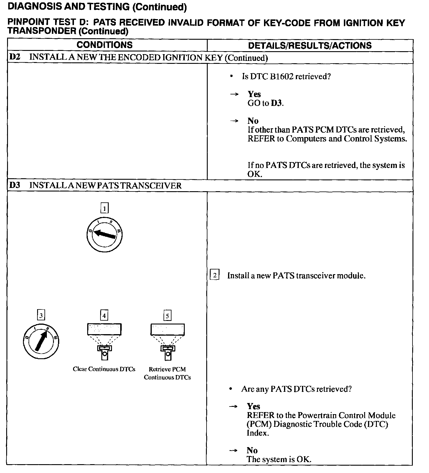 D1 - D2 / D: PATS Received Invalid Format Of Key-Code From Ignition Key Transponder: