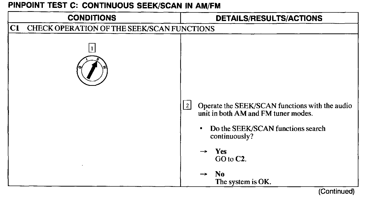 Test C: Continuous Seek/Scan In AM/FM