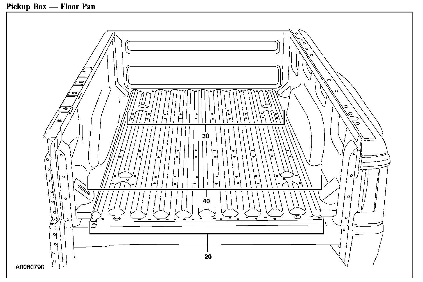 Welds - Flareside Pickup BoxFactory resistance spot welds are to be substituted with MIG plug welds. Plug welds must equal factory welds in both location and quantity.