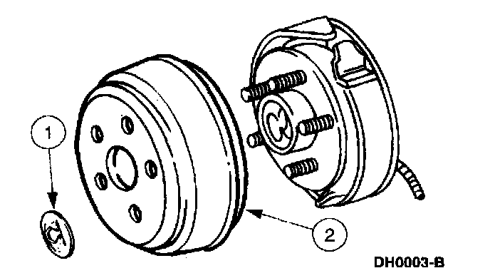 NOTE: If the brake drum is rusted to the axle shaft pilot diameter, tap the center of the brake drum between the wheel studs.