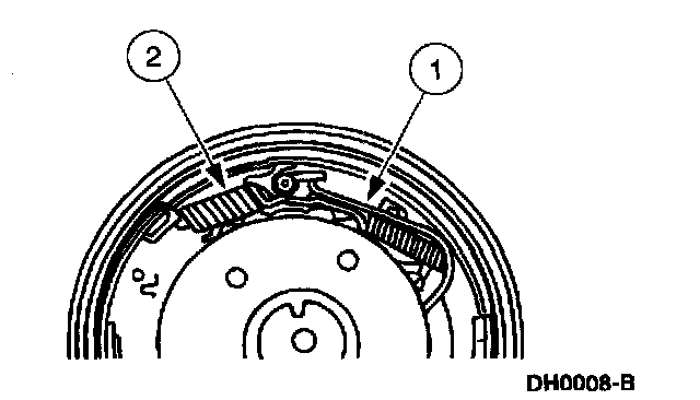 1. Remove the brake shoe hold-down springs.