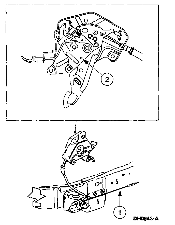 3. NOTE: Disconnect the front parking brake cable and conduit at the locating hole end of the connector.