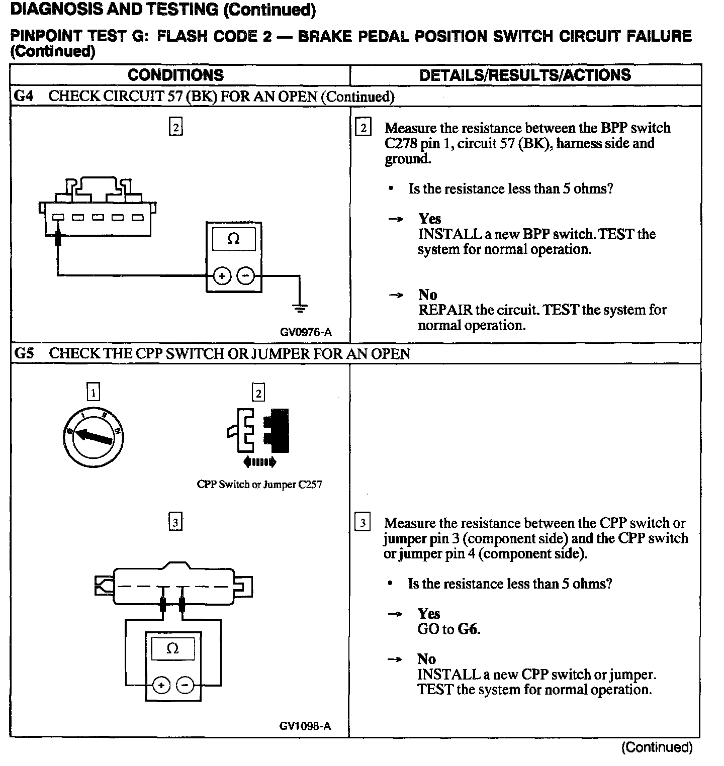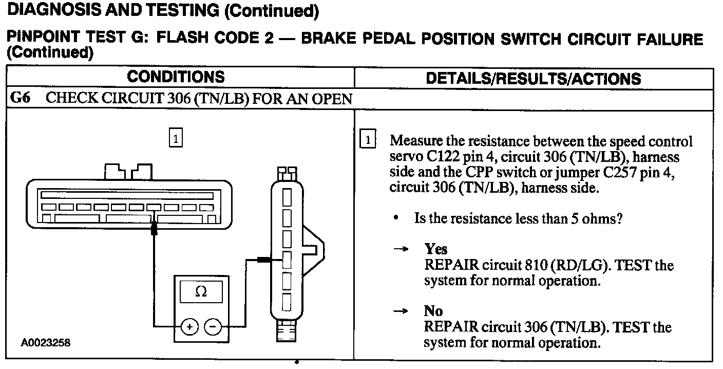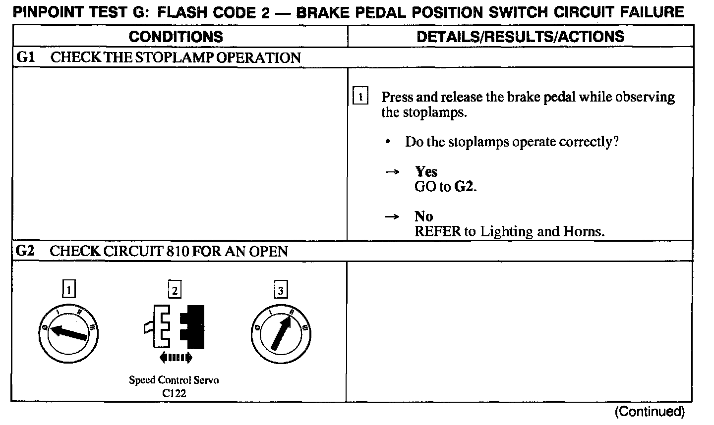 Test G: Flash Code 2 - Brake Pedal Position Switch Circuit Failure