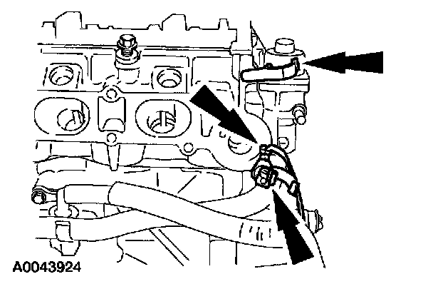 8. Disconnect the engine coolant temperature sender unit and the Exhaust Gas Recirculation (EGR) valve electrical connectors.