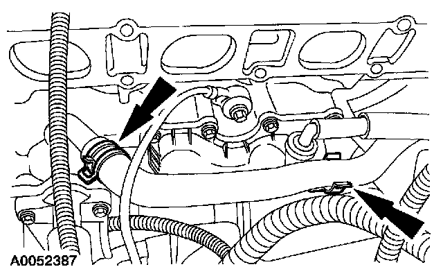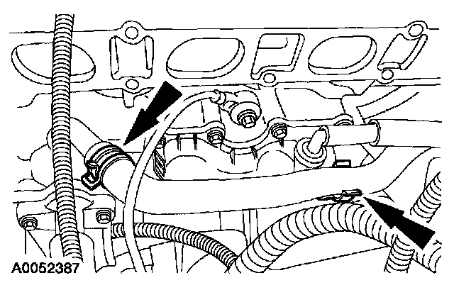 9. Disconnect the EGR coolant hose and remove it from the hose bracket.