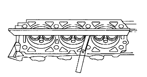 Use a straight edge and a feeler gauge to inspect the cylinder head for flatness. If the cylinder head is distorted, install a new cylinder head.