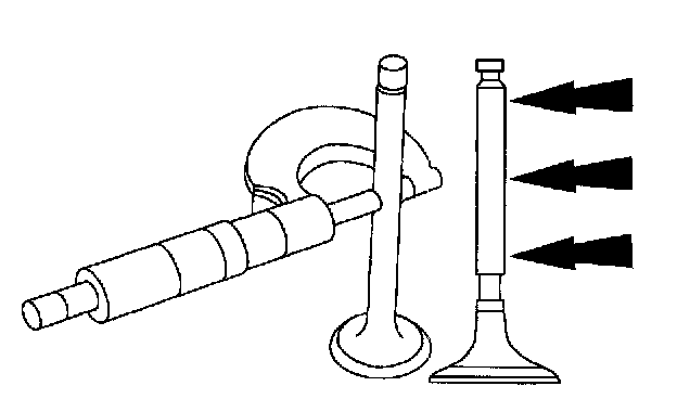 Measure the diameter of each intake and exhaust valve stem at the points shown. Verify the diameter is within specification.