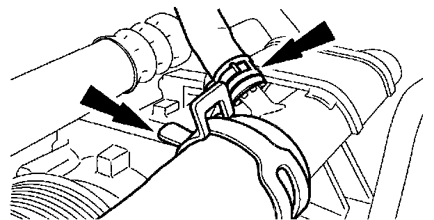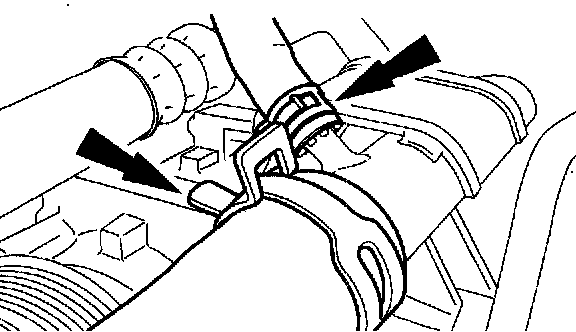 7. Disconnect the upper radiator hose and the engine reservoir hose.