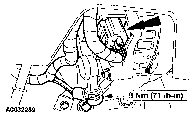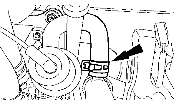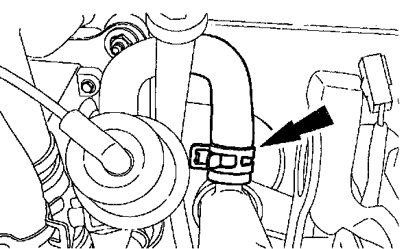 13. Connect the upper radiator hose and the engine reservoir hose.